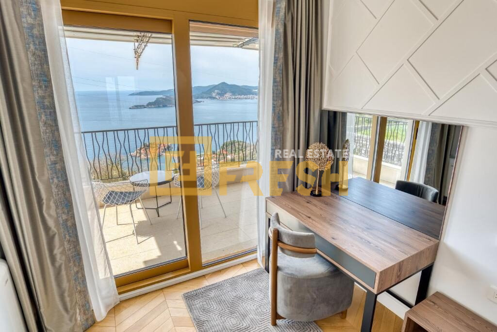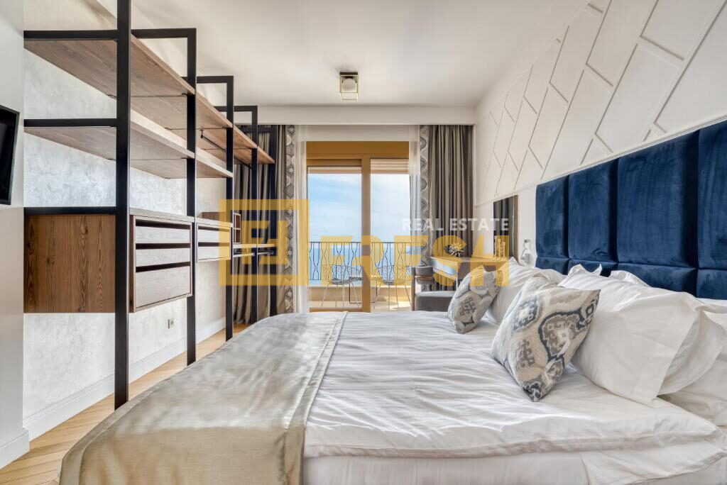 Jednosoban lux namješten stan sa otvorenim i trajnim pogledom na more, površine 54m2, u ekskluzivnom kompleksu zatvorenog tipa, Budva.