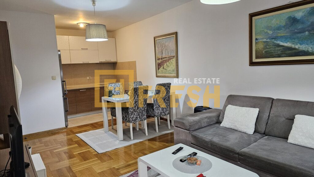 Jednosoban namješten stan površine 44 m², smješten u novijoj zgradi renomiranog investitora na Starom aerodromu.